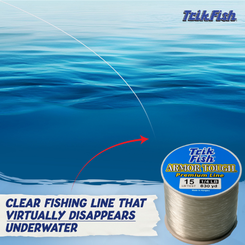 Trik Fish Armour Tough Clear is a premium line that virtually blends into a natural underwater environment. Clear is available in 1/4LB, 1LB, and 5LB spools.
