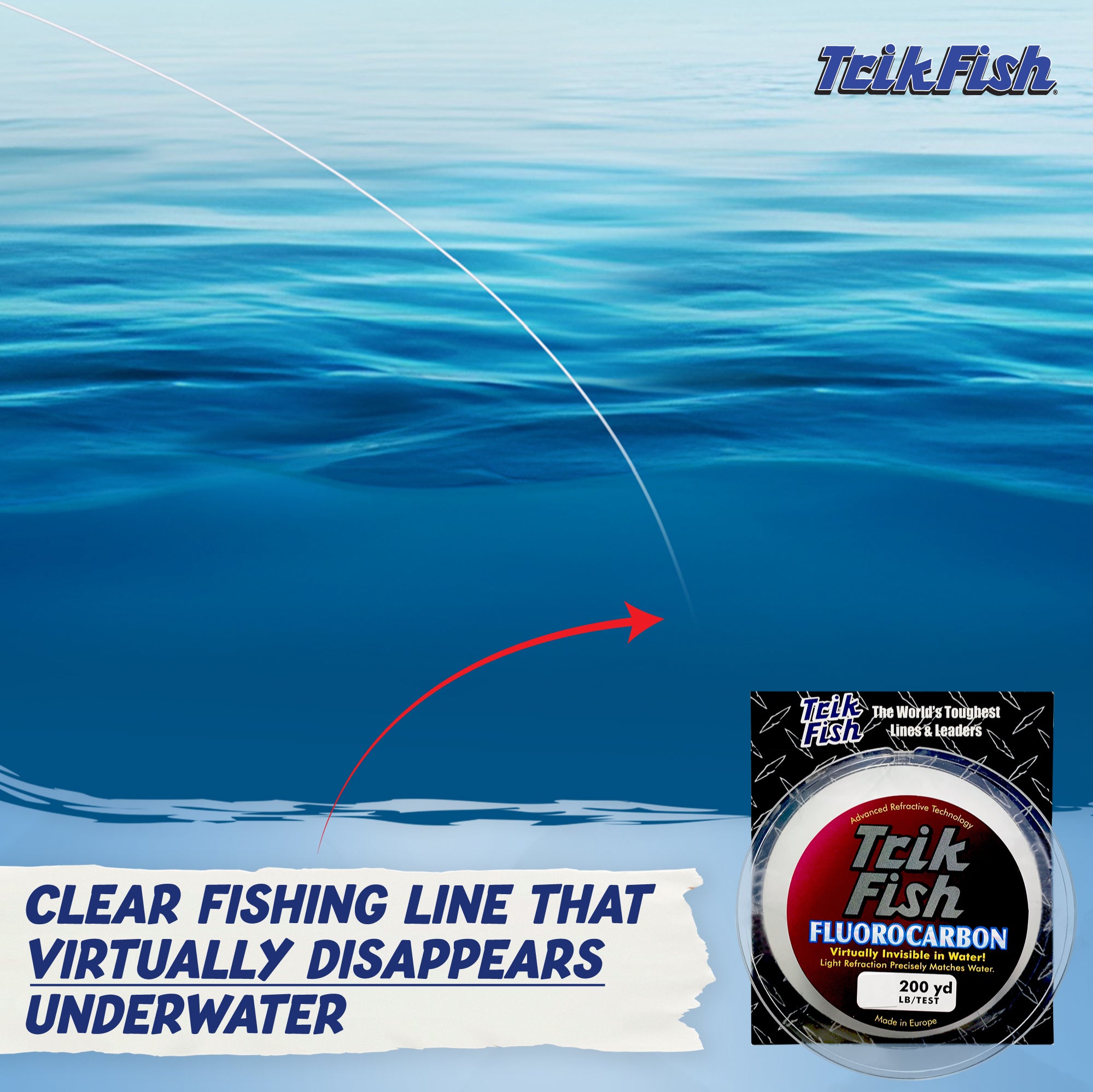 Trik Fish exclusive high-tech, soft, fluorocarbon line that has virtually no memory and incredible knot strength. It does not have the "milky" look that most fluorocarbons have.. which defeats the purpose of a stealthy approach in your fishing line. Available in 200 yards and bulk spools.