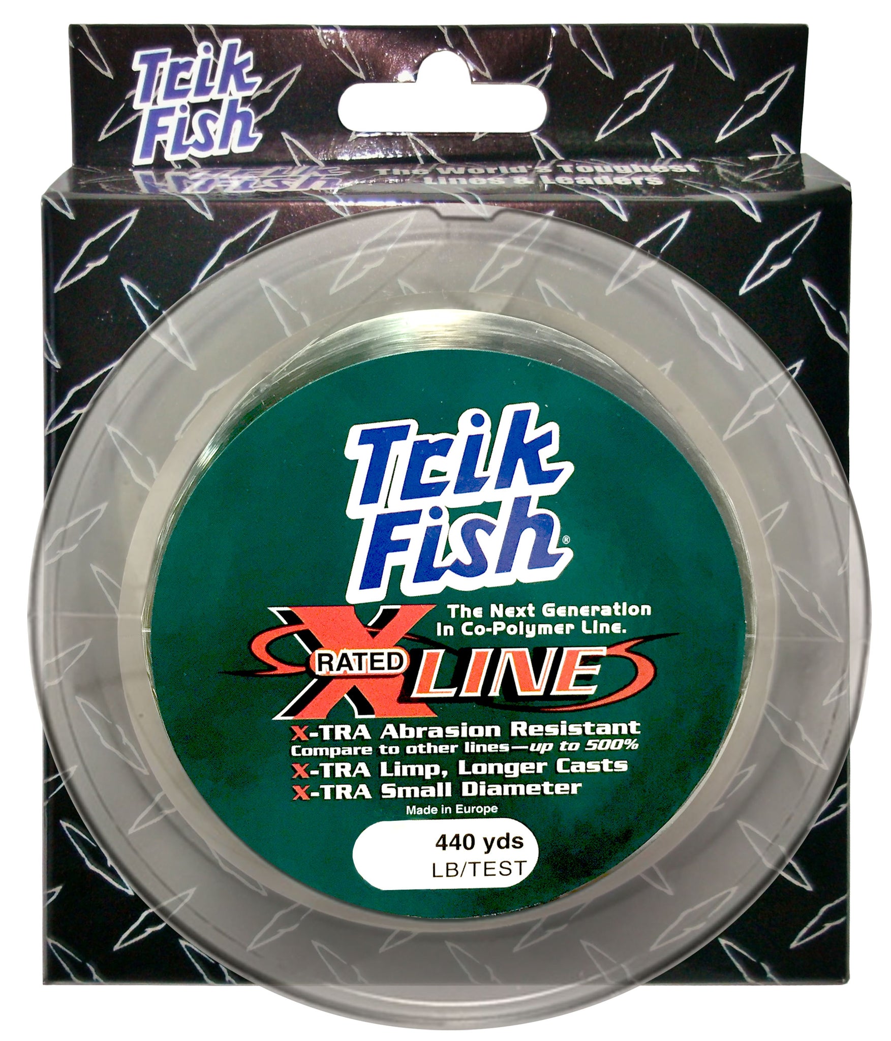500% MORE ABRASION RESISTANT! This Co-Polymer is produced with the most cutting edge, up-to-the-minute technology. It is 5 times more abrasion-resistant compared to other lines. X-RATED SOFT means longer casts and will not take a set. X-RATED SMALL DIAMETER means more spool capacity, lower visibility, and improved lure action. X-RATED STRENGTH means armor tough! Available in bulk or 440 yard spools.