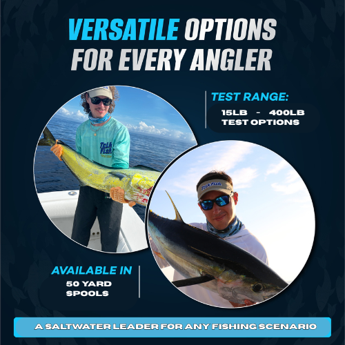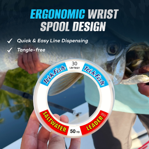 If you are looking for abrasion resistance and durability, "The Original" Saltwater Leader has been tested and proven under the toughest fishing conditions -- and it always comes out on top! Featuring an open, user-friendly wrist spool, the Trik Fish Saltwater Leader is available in versatile selections: Camouflage and Clear.